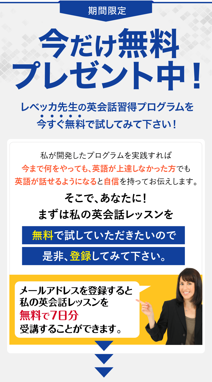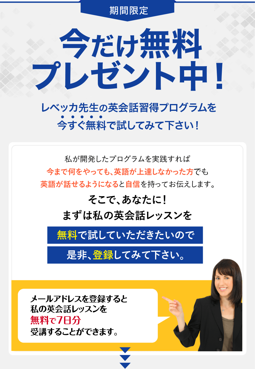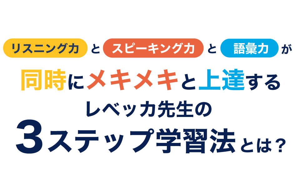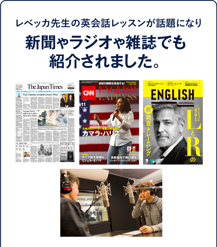 - 結局、映画や海外ドラマをいくら見ても、英語上達しないとわかりました。英語を勉強するには、ネイティブの先生から学ぼうと思い、レベッカ先生のレッスンを受講しました。