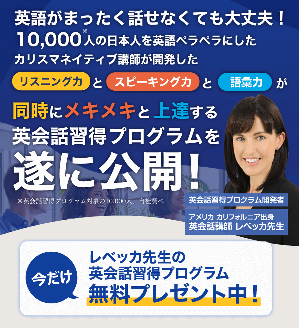 - レベッカ先生のレッスンは、私が英語系のYouTubeチャンネルを見ていた時に、留学しないで独学で英語ペラペラになったユーチューバー達の英語学習法を導入していて、これなら英語を話せるようになると思ったからです。